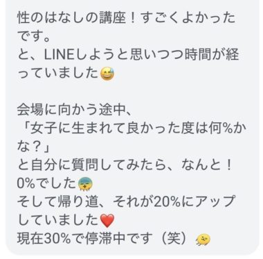 この「性のはなし」に参加してくださった方から、↓のようなLINEが。