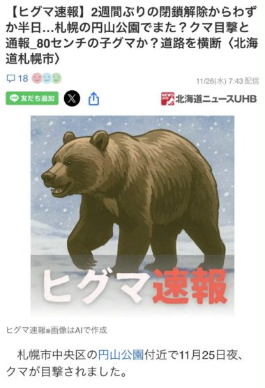 隣接する円山公園、熊出没により数日前まで2週間ほど閉鎖されていたそうなんです。