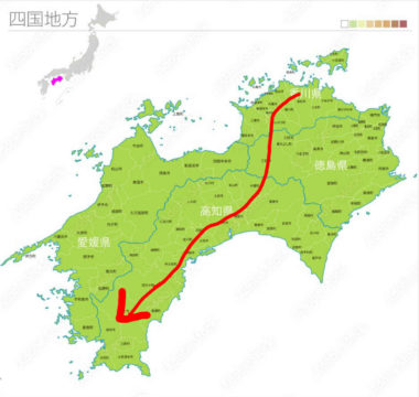 四国の右上から左下に移動してきました(イメージ図↓)