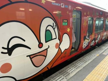 高知駅へ向かう特急は、アンパンマン列車でした。