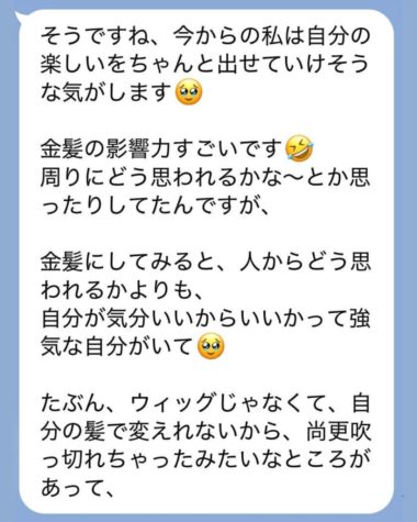 金髪にしたあとに送ってくれたLINE、ぜひ読んでみてください。